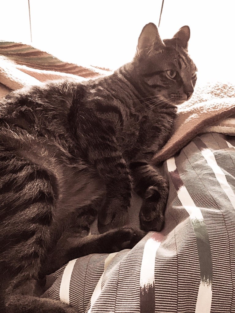 είναι τόσο αγαθός και ήσυχος.. ανεβαίνει στην άκρη του κρεβατιού και κοιμάται κουλουριασμένος.. διαβάζω ανακεκλιμμένη σαν την Πωλίνα Μποργκέζε εγώ, τον παρατηρώ και του κάνω: μ´αγαπάς βρε; κουνάει την πολύ ακρούλα της κοιμισμένης του ουράς. κι εγώ σ´αγαπώ χαμένε, του λέω και τρεμουλιάζει την ουρά. αλλάζω προσανατολισμό και του δίνω φιλάκι στην πλατούλα. μετά κρύβω στη χούφτα μου τη μουρίτσα του και τον κάνω μαξιλάρι. αρχίζει να γουργουρίζει. έχω παρατηρήσει ότι τα γουργουρητά διαφέρουν μεταξύ τους, κολλάω πάντα το αυτί μου στο κορμάκι του, τα ακούω καλά και ξέρω, μπορώ να γράψω ως και τυπολογία γουργουρητών.. σήμερα ακούγονται σαν κάποιος να γαζώνει σε επαγγελματική μηχανή πατώντας συνέχεια το πεντάλ.. και ανασαίνει αργά και ρυθμικά… ένα ζεστό μαλακό μαξιλάρι που γουργουρίζει..