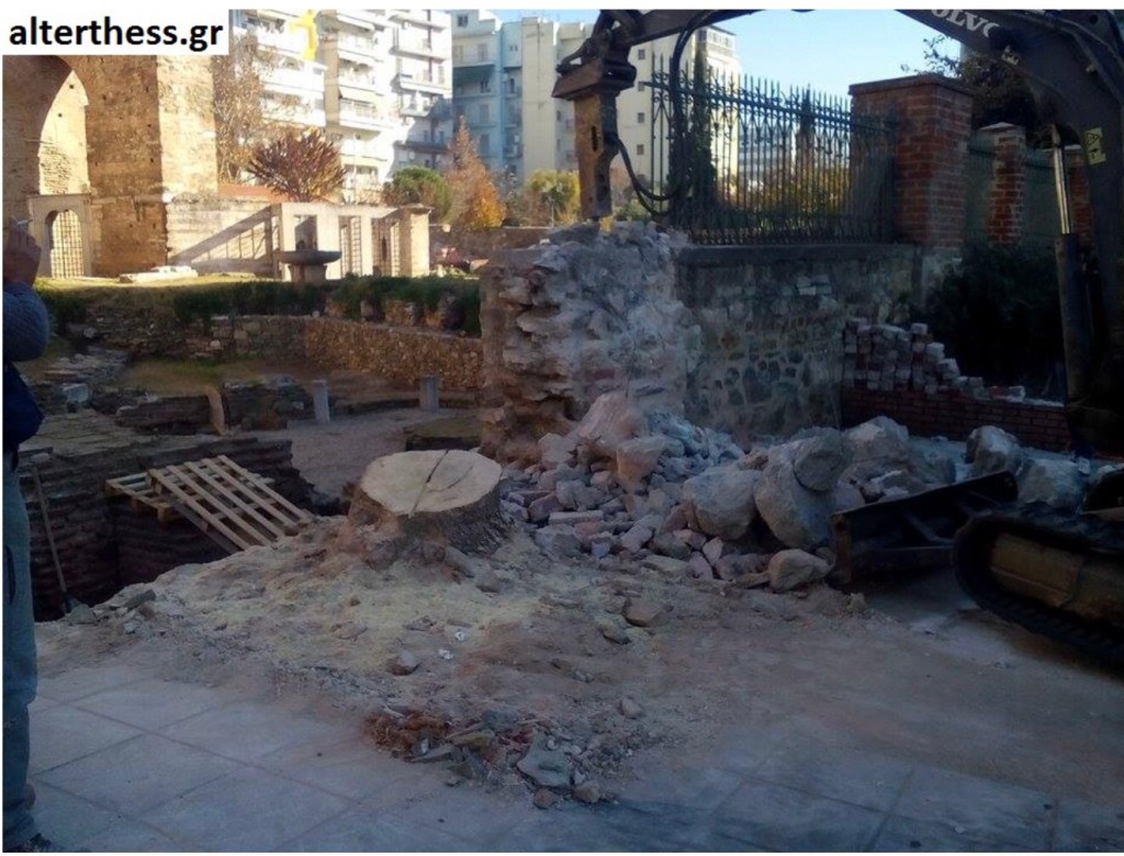23 Δεκεμβρίου 2015: Κατεδάφισαν μέρος του προαύλιου τοίχου της Ροτόντας – Αντιδρούν κάτοικοι και αρχαιολόγοι (βλ. εδώ):Την κατεδάφιση μέρους του προαύλιου τοίχου της Ροτόντας πραγματοποίησαν το πρωί της Τετάρτης εργάτες εταιρείας μετά από απόφαση των αρμόδιων υπηρεσιών της Εφορίας Αρχαιοτήτων Θεσσαλονίκης.