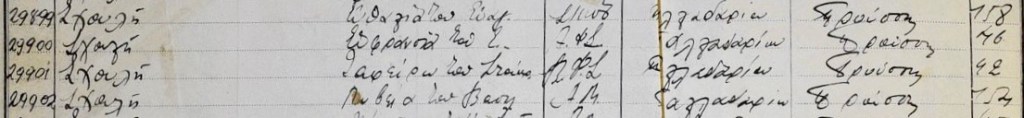 [3] Μία παρατήρηση με αφορμή τον Πίνακα Οι Πελαδαρινοί στο Πελαδάρι Βιθυνικό. 1300-1922. Ανθρωπογεωγραφικά, σ. 305: η οικογένεια Σχουλῆ καταγράφεται χειρόγραφα στο Αρχείο Εκτιμητικών Επιτροπών των Ανταλλαξίμων (ψηφίο Σ) με α/α 29.895, 29.896, 29.899, 29.900. Πιθανόν πρόκειται για την οικογένεια του Ευγενή Σχουλίδη, όπου λάθη καταγραφής από βαρυακουσία ή δυσαναγνωσία του πρωτοτύπου τον μεταμορφώνουν σε Εὐάγγ., Εὐαγ. και Ε. και την κόρη του Άρτεμη σε Ἀρτεμησία.