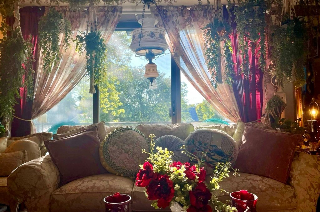 ήταν δυο αδελφές, η τρίτη είχε πρόσφατα πεθάνει..οι δυο κατοικούσαν στον ίδιο, πρώτο, όροφο.. δεν πολυμιλιόνταν μεταξύ τους, η μια που ήξερα καλύτερα ήταν ό,τι νάναι, μπερδεμένη, προσβλητική, αδιάφορη μάνα, να μη δίνει τίποτε στα παιδιά της χωρίς υλικό αντάλλαγμα, τα παιδιά της παράξενα, η μια κόρη ψεύτρα και αδιάφορη, η μικρή κόρη ψεύτρα και καταστροφική, ο γιος ζαμανφού.. μου έλεγε πως η αδελφή της ήταν γριά παράξενη, χωρισμένη γιατί ήταν ανάξια, συγκατοικούσε μ´έναν αχώνευτο γέρο, μιλούσε στα καναρίνια, έλεγε το φλιτζάνι και ζούσε σε ένα αχούρι.. και ένα βράδυ οι δυο αδελφές άνοιξαν την πόρτα τους τυχαία ταυτόχρονα, η μια για να με ξεπροβοδίσει και η άλλη μάλλον περίεργη για την επισκέπτρια της αδελφής, μια τεράστια χοντρή με καφτάνι, «να σας συστήσω» λέει η δικιά μου, «χαίρω πολύ», «ελάτε μέσα», «πάμε» λέει και μου κλείνει το μάτι, «να δεις τι ωραίο σπίτι, το αχούρι» ανοιγοκλείνει το στόμα της γυρισμένη προς τα μένα για να μην τη δει η αδελφή και μπαίνουμε..και μπαίνω στον ..παράδεισο. μυρίζει ινδικό άρωμα, πουλιά τιτιβίζουν σε τρισδιάστατα κλουβιά πλεγμένα από μετάλλινα σύρματα και ξύλινα πηχάκια, ο φαλακρός γέρων αδιάφορος καπνίζει στο βάθος, χρώματα, χρώματα, χρώματα, πλαστικά λουλούδια στα βάζα, πρασινάδες σε γλαστρόνια να κρέμονται από μακραμέ κρεμάστρες απ´ το ταβάνι, φθαρμένα βελούδα, μετάξια και σατέν τυλιγμένα παντού στις βουλιαγμένες πολυθρόνες, αραχνοϋφαντες μαύρες κουρτίνες στα τεράστια παράθυρα κεντημένες με πεταλούδες που διακρίνονται κόντρα στο φως του δρόμου, ναι, ήθελα να μου πει το φλιτζάνι από βυσσινιά γυαλιστερή χρυσοποίκιλτη πορσελάνη στο ζάρφι, μα η άλλη με άρπαξε και φύγαμε κυνηγημένες, «θα ξανάρθω» είπα, δεν έτυχε, η χοντρή τσατσά απόθανε, πάνε τα χρώματα, τα πουλιά, τα αρώματα..