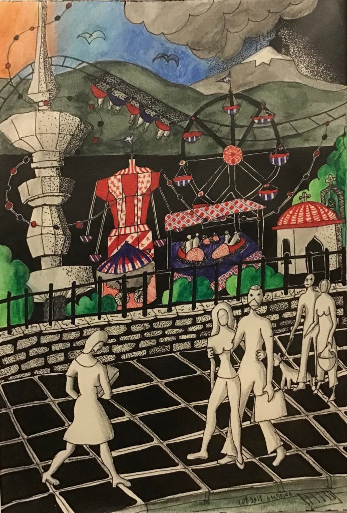 όταν άνοιγε η Έκθεση ήταν ένα πανηγύρι για μένα… η μαύρη μπύρα και τα βραστά λουκάνικα στο λούνα-παρκ. το λούνα παρκ ήταν μπροστά στη Λεωφόρο Στρατού, το έχω ζωγραφίσει. το 1969 μετακινήθηκε ψηλότερα, δίπλα στο δρόμο του συνοικισμού της αγίας Φωτεινής.