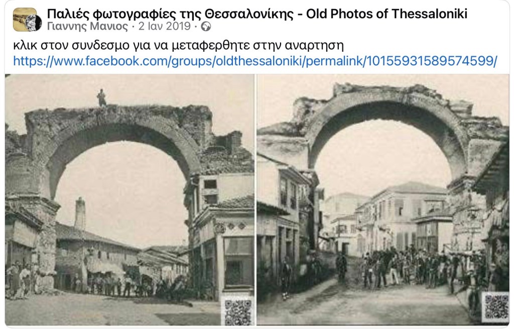 παρατηρώντας τις κατά εποχές στάθμες του δρόμου, βλέπουμε πόση αρχαιότητα απωλέσαμε οριστικά χωρίς προηγούμενη ανασκαφική έρευνα χαμηλώνοντας το δρόμο. απωλέσαμε δηλαδή όλους τους αιώνες από την εποχή του Γαλερίου έως το 1918 τουλάχιστον, οπότε είχε γίνει περιορισμένη ανασκαφική έρευνα. οι υψομετρικές διαφορές είναι ορατές όταν συσχετίσουμε τη στάθμη του δρόμου με τις ανάγλυφες ζώνες του μνημείου και επίσης όταν θυμηθούμε πού βρίσκεται σήμερα η «ερυθρά» της παρακείμενης πλέον οδού Εγνατία σε σχέση με το μνημείο. και επειδή σίγουρα δεν το ξέρετε, οι γεωτρήσεις που έγιναν για το μετρό απέδειξαν ότι η αψίδα του Γαλερίου ήταν, όταν οικοδομήθηκε στις αρχές του 4ου αιώνα, ορατή από παντού γιατί βρισκόταν πάνω σε μικρό ύψωμα, η αρχαία Εγνατία δηλαδή ανηφόριζε από τα δυτικά προς τα ανατολικά και εδώ ήταν ψηλότερη τουλάχιστον 2,5 μέτρα από όσο ήταν στη διασταύρωση με την αρχαία Βενιζέλου.
